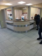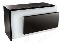 Стойка-ресепшн, обладающая невероятным удобством, выполнена с небольшим закруглением. Модель предложена в сочетании нескольких удачных цветов, а посередине имеется специальная стеклянная надставка.