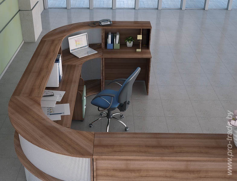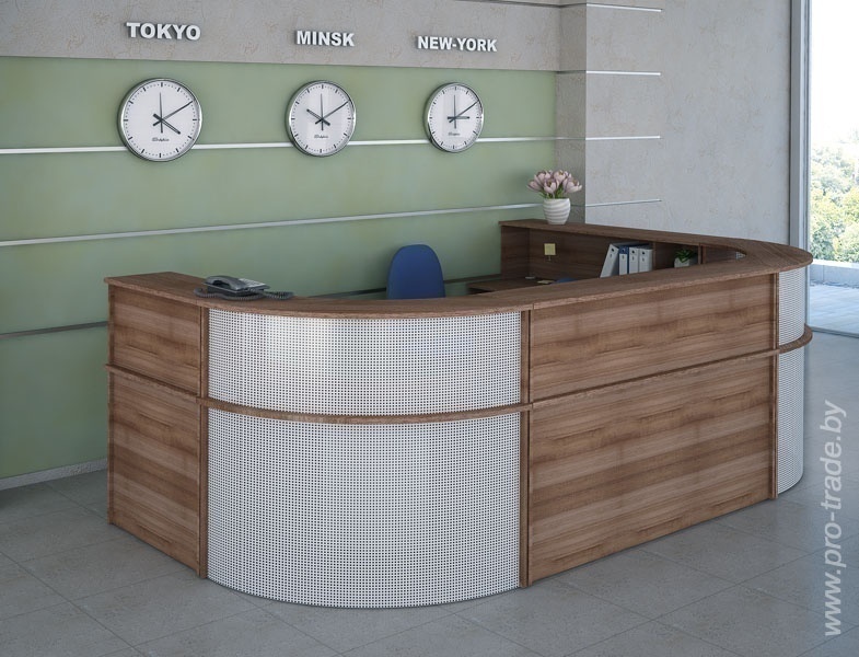 Стойки ресепшн представляют собой модульные многофункциональные секции, которые идеально впишутся в любое пространство. Различные размеры и конфигурации элементов дают возможность с максимальным комфортом и практичностью организовать рабочее место секретаря. Использование декоративных металлических элементов создаст презентабельный и динамичный образ приёмной офиса.