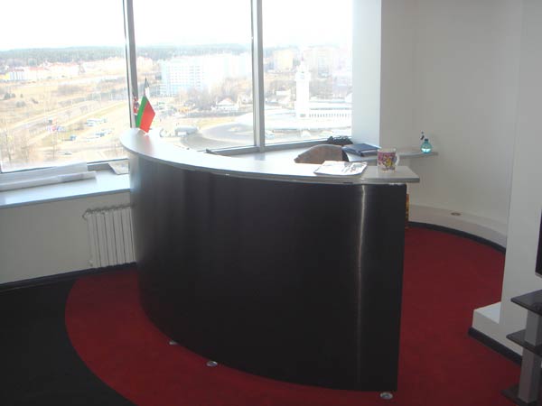 Небольшая стойка-рецепшен отлично подойдет для небольшого офиса или компании. рецепшен сделан очень стильно и современно, что будет привлекать клиентов и вызывать их доверие.
