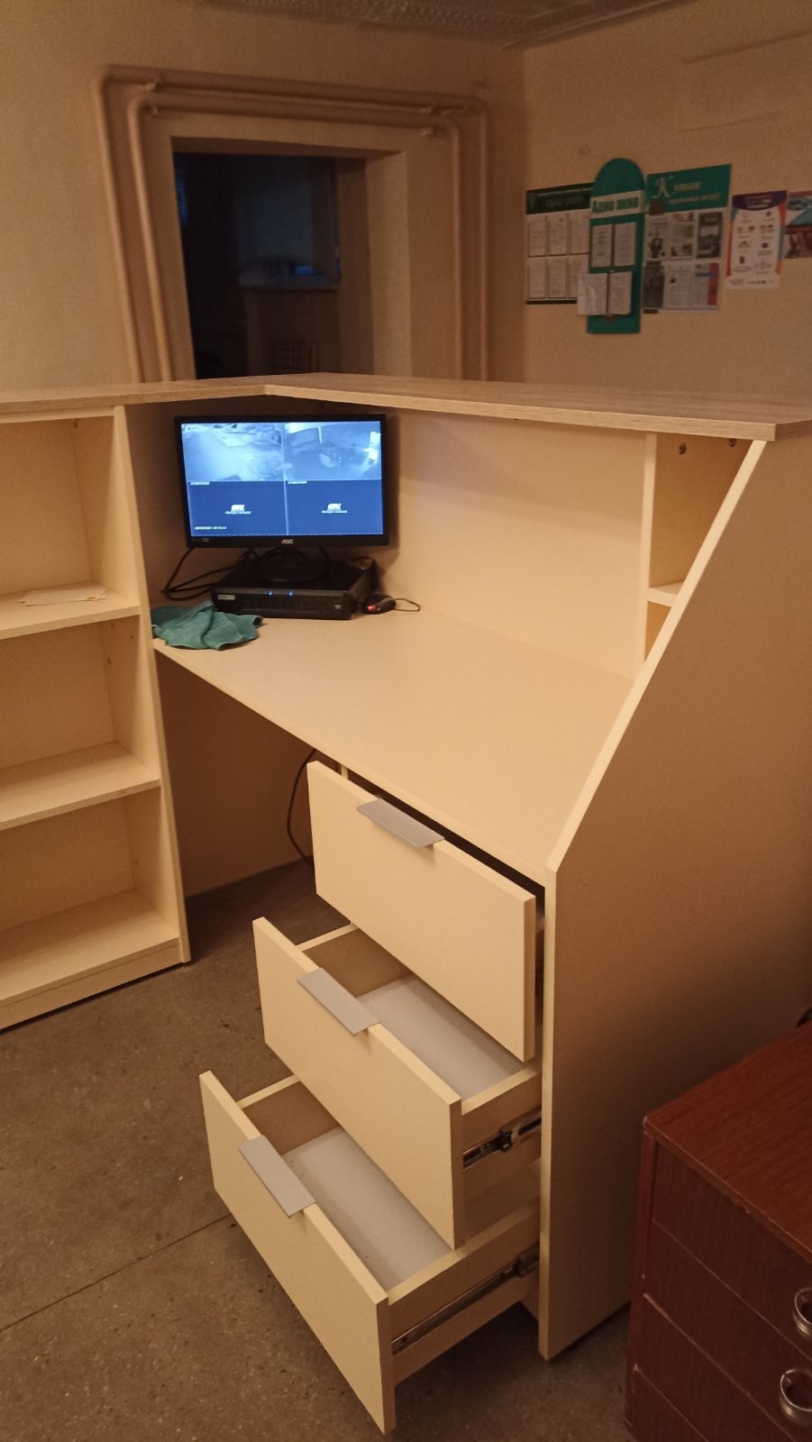 К стойке могут быть изготовлены тумбы, полки, шкафы, стеллажи.