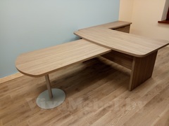 Стол в кабинет руководителя радиусный с тумбой. Дополнительная приставка. Отличный функционал.
