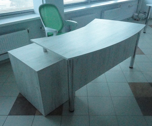 Необычный угловой стол для руководителя в светлых тонах