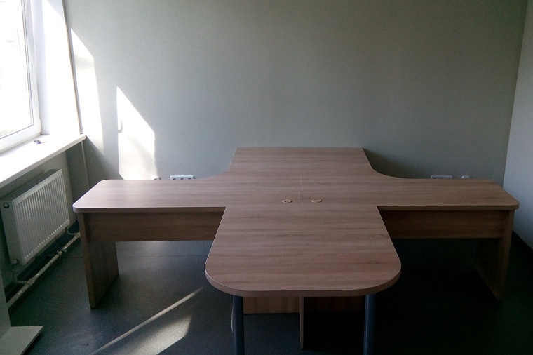 Комплект офисной мебели, созданный для удобства четырех сотрудников, предлагает широкий спектр возможностей для организации рабочего пространства. Четыре угловых стола с тумбами могут быть установлены отдельно или соединены в единую крестообразную конструкцию, обеспечивая гибкость в планировании рабочего места.