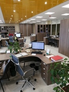 Стол с перегородкой на металлокаркасе, тумбой и шкафами для организации системы рабочих мест 006П