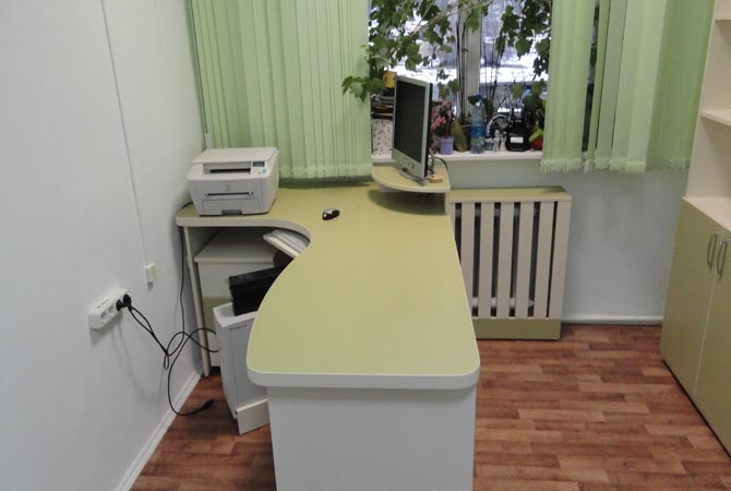 Нежно-розовый цвет столешницы. Полка для клавиатуры.