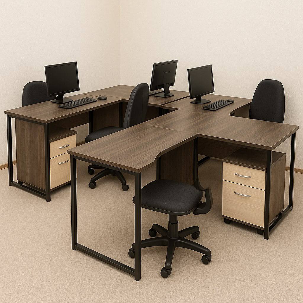 Офисный стол с коричневой столешницей