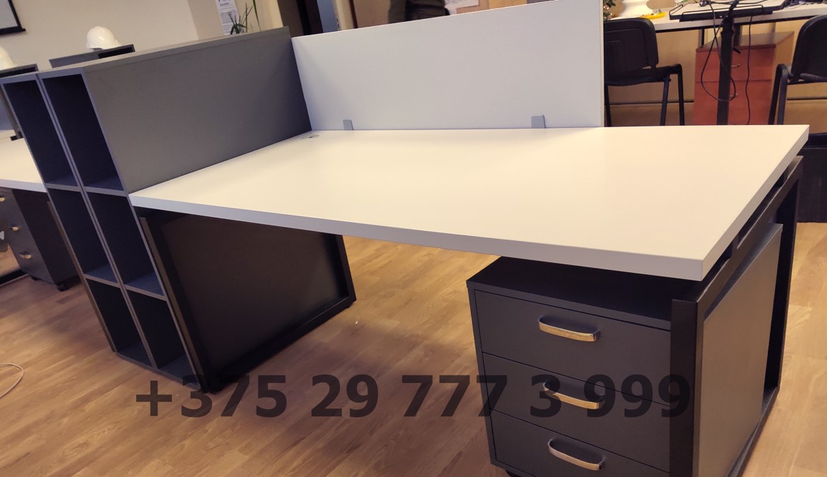 Стол с перегородкой на металлокаркасе, тумбой и шкафами для организации системы рабочих мест 006П