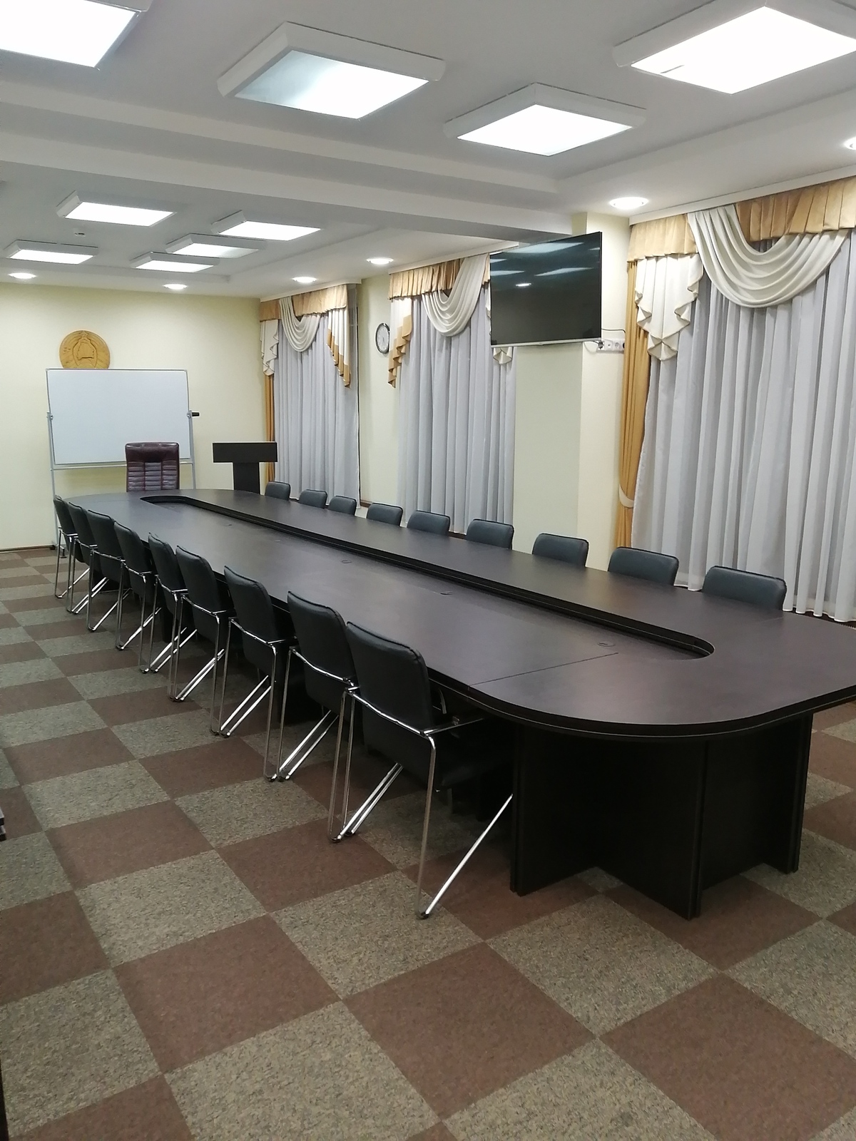 Столешница и конструкция стола разработаны с учётом эргономики, что позволяет эффективно использовать пространство и обеспечивает удобство при обсуждении вопросов за круглым или прямоугольным форматом.
