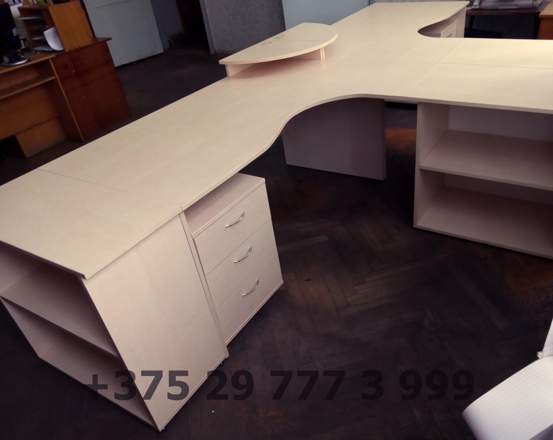 Радиусная форма. Широкая столешница. Опора: ножки.