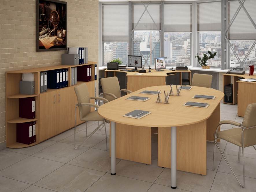 Стол в офис с бриф приставкой и вместительной тумбой 015П