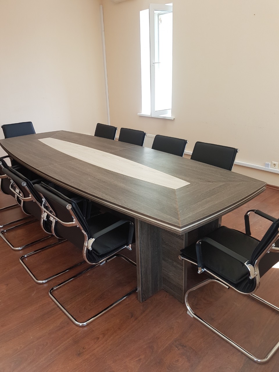 Стол для переговоров с декоративной вставкой на столешнице