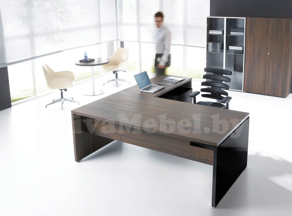 Стол идеально подойдёт для организации рабочего пространства руководителя, обеспечивая эффективное использование площади и функциональность.