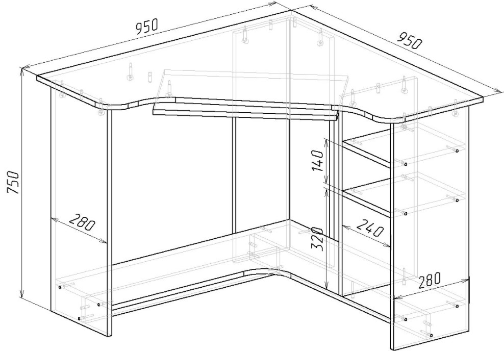 Стол рабочий угловой на цельном или разборном подстолье серии О