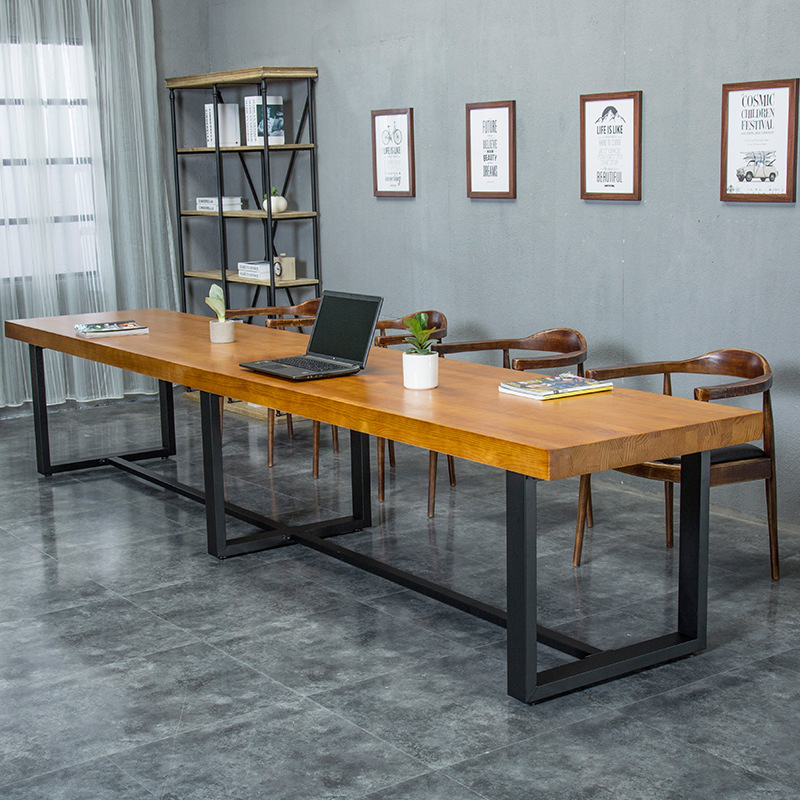 Темный стол с перпендикулярной пристройкой для переговоров.
