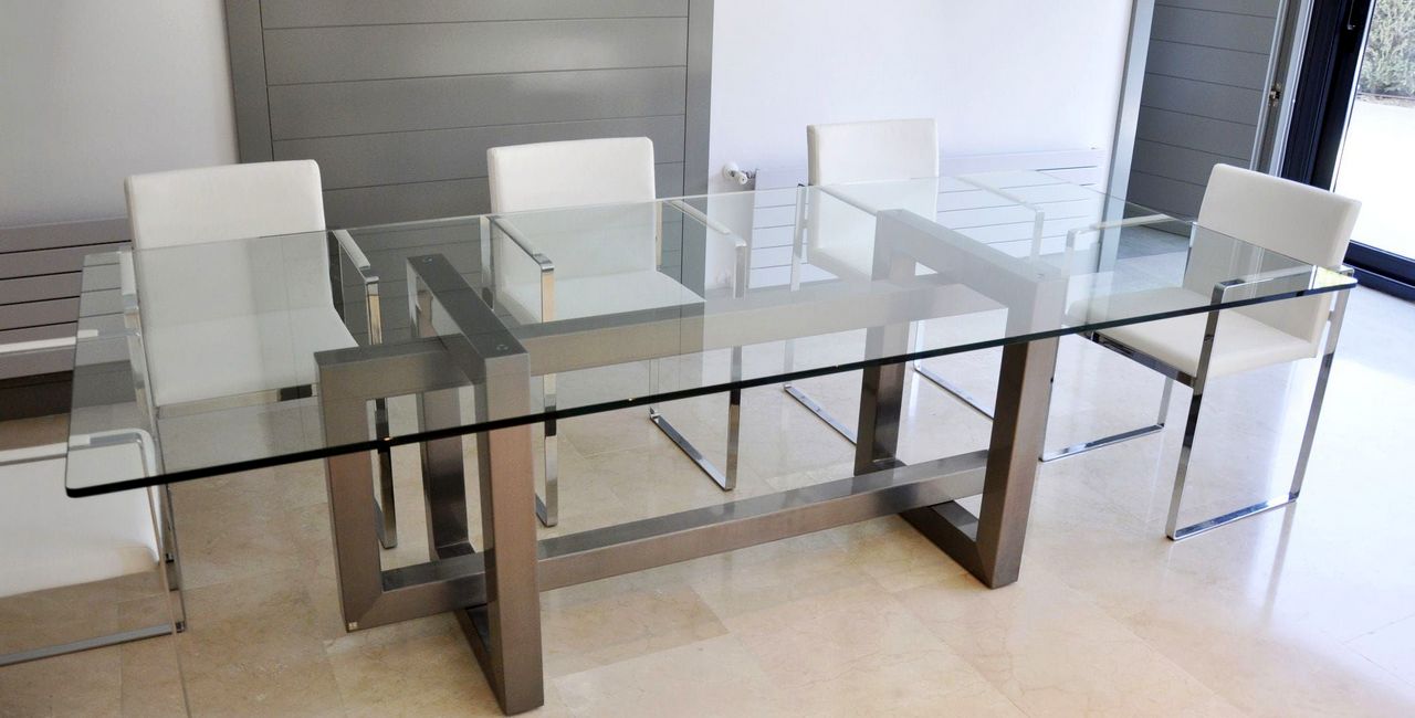 Широкий стол для переговоров. Матовые стеклянные вставки.
