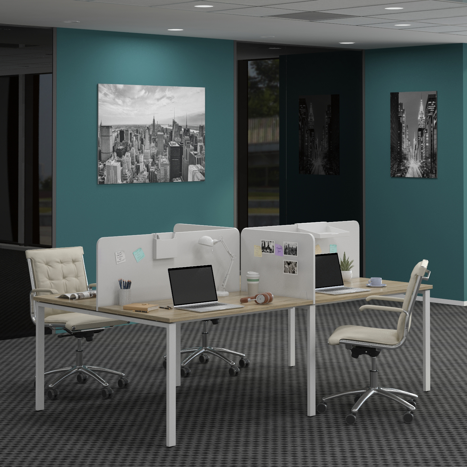 Стол письменный четырехместный с перегородками