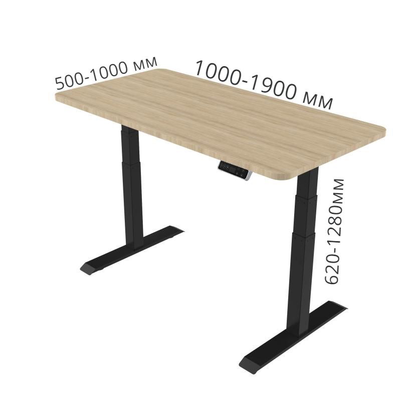 У данной модели 2 независимых мотора в каждой из опор. В базовой комплектации присутствует сенсорный пульт запоминания высоты на 2 положения. Каждая опора стола состоит из 3-ех сегментов. Опора прямоугольной формы. По высоте механизм стола регулируется от 66 до 132 см., и раздвигается по длине в диапазоне от 100см до 150 см. Рама стола выдерживает нагрузку до 125 кг. Модель включает в себя защитные режимы: система защиты от зажима при опускании и поднятии стола, защита от перегрузки.