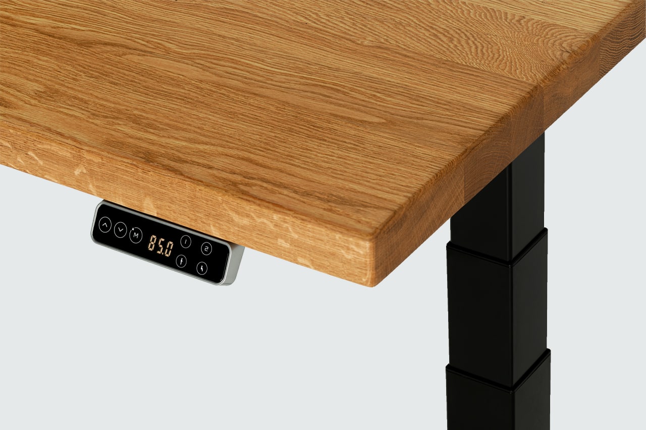 У данной модели 2 независимых мотора в каждой из опор. В базовой комплектации присутствует сенсорный пульт запоминания высоты на 2 положения. Каждая опора стола состоит из 3-ех сегментов. Опора прямоугольной формы. По высоте механизм стола регулируется от 64 до 130 см., и раздвигается по длине в диапазоне от 100см до 150 см. Рама стола выдерживает нагрузку до 125 кг. Модель включает в себя защитные режимы: система защиты от зажима при опускании и поднятии стола, защита от перегрузки.