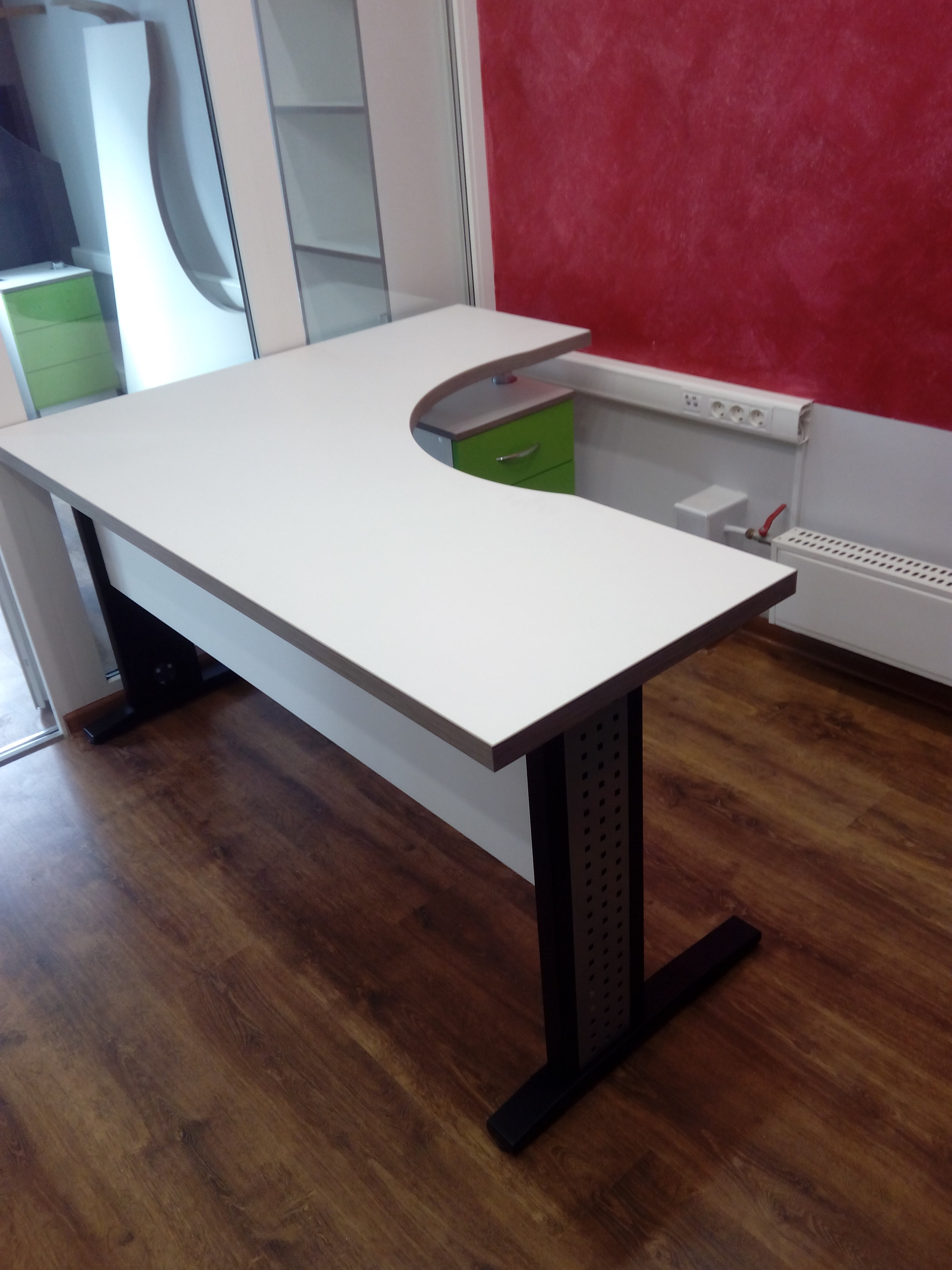 код 110557Радиусная столешница, тумба с тремя выдвижными ящиками. Дополняется навесными полками
