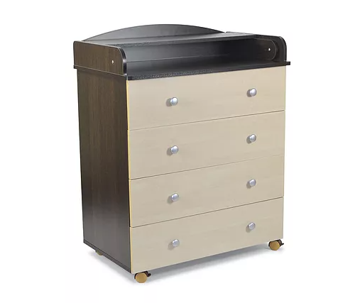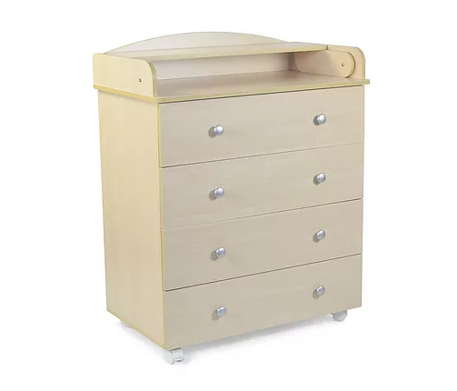 Комод имеет четыре ящика для хранения детских вещей.