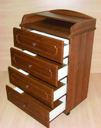 Благодаря своим миниатюрным размерам, пеленальный комод «Бэби Элит Классик мини», поместится там, где другие комоды не смогут. Комод оснащен выдвижной пеленальной доской, четырьмя выдвижными ящиками и колесиками с фиксаторами.