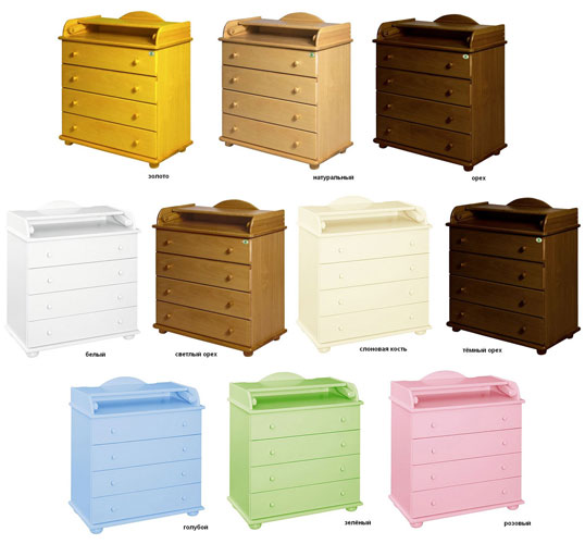 Комод пеленальный из древесины бука. Широкое разнообразие оттенков.