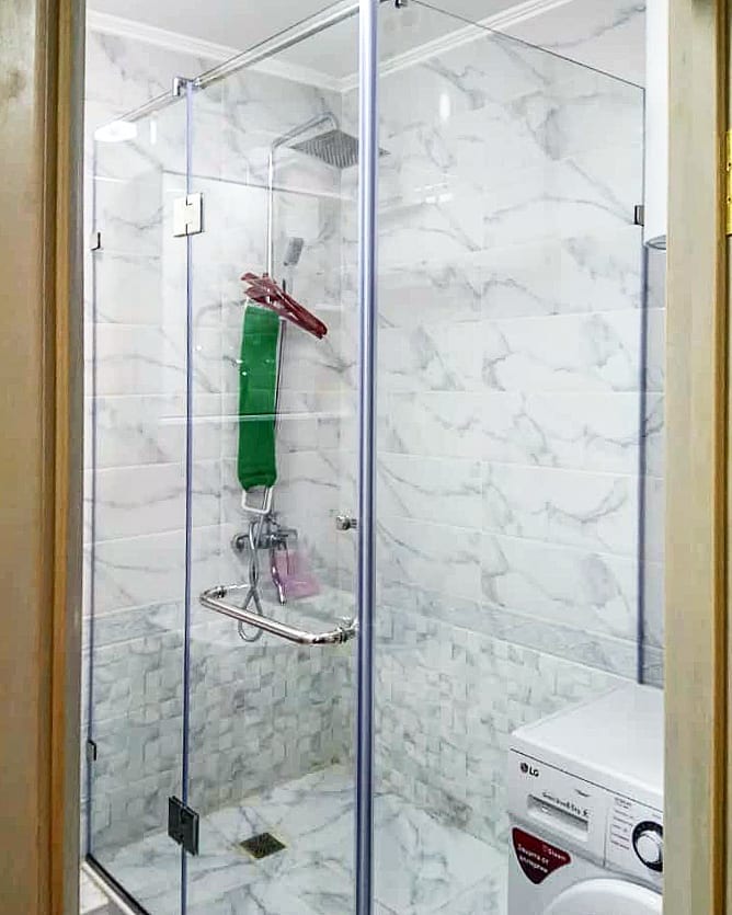 Красивая и практичная перегородка для душевой кабины.