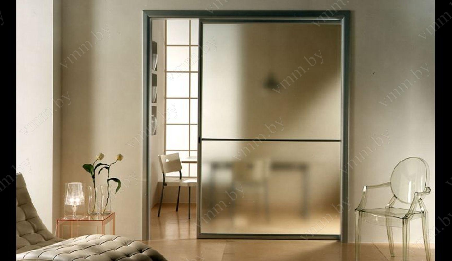 Графитовая перегородка-дверь в дверной проем стекло сатин