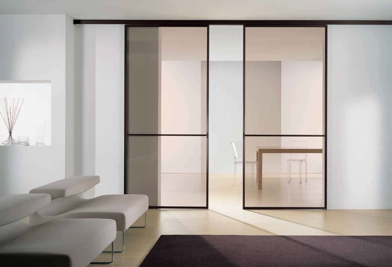 Черный профиль, прозрачное стекло. Накладные ручки.