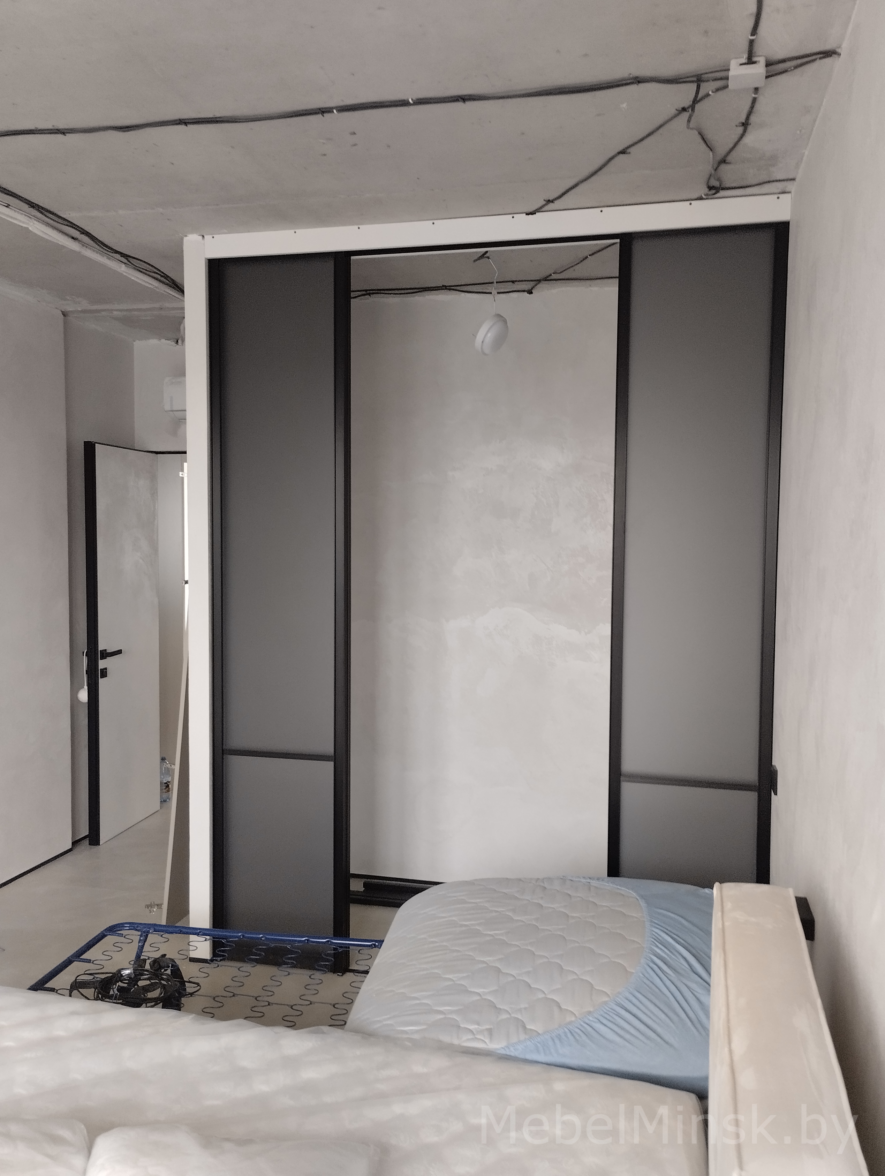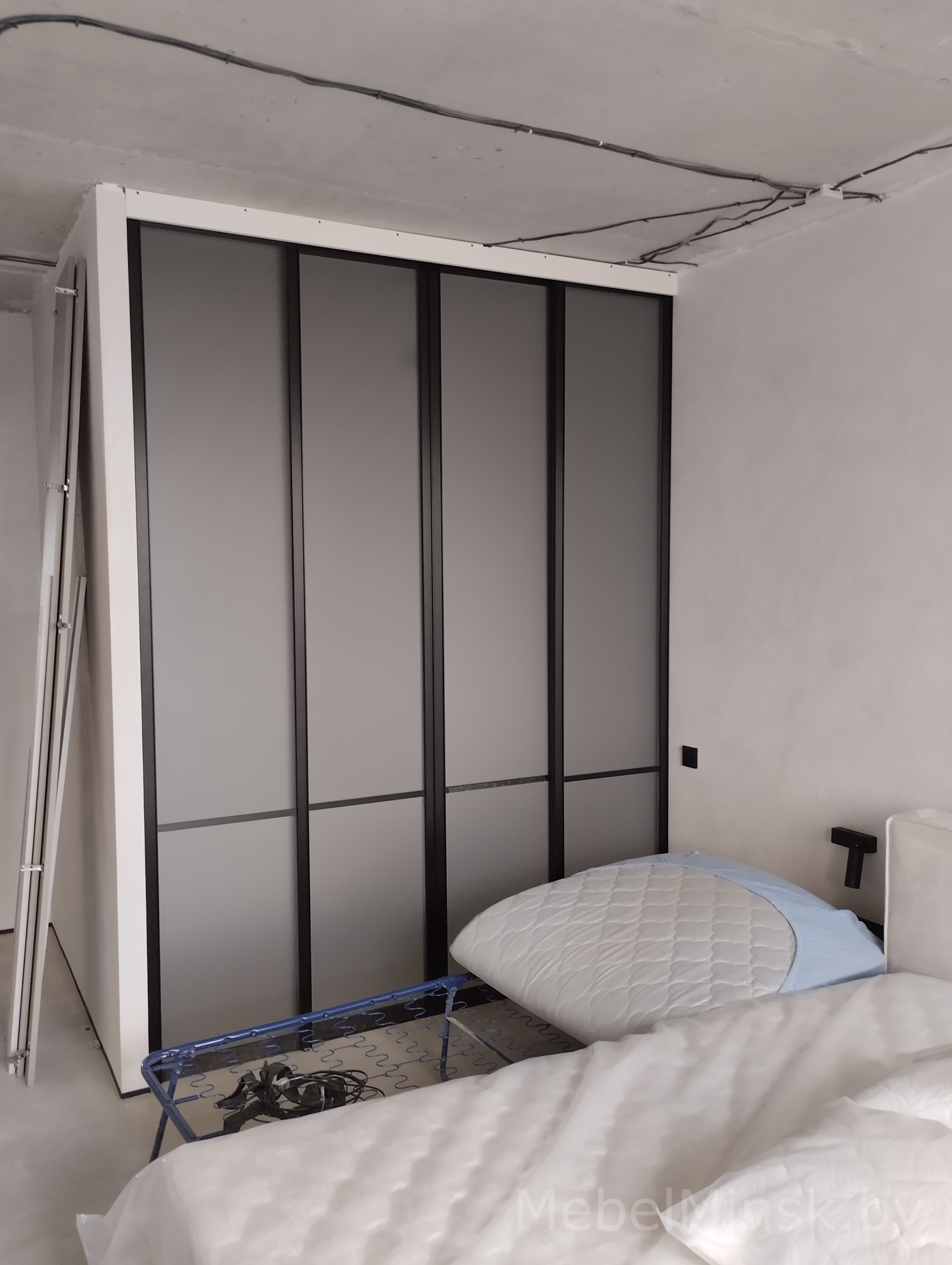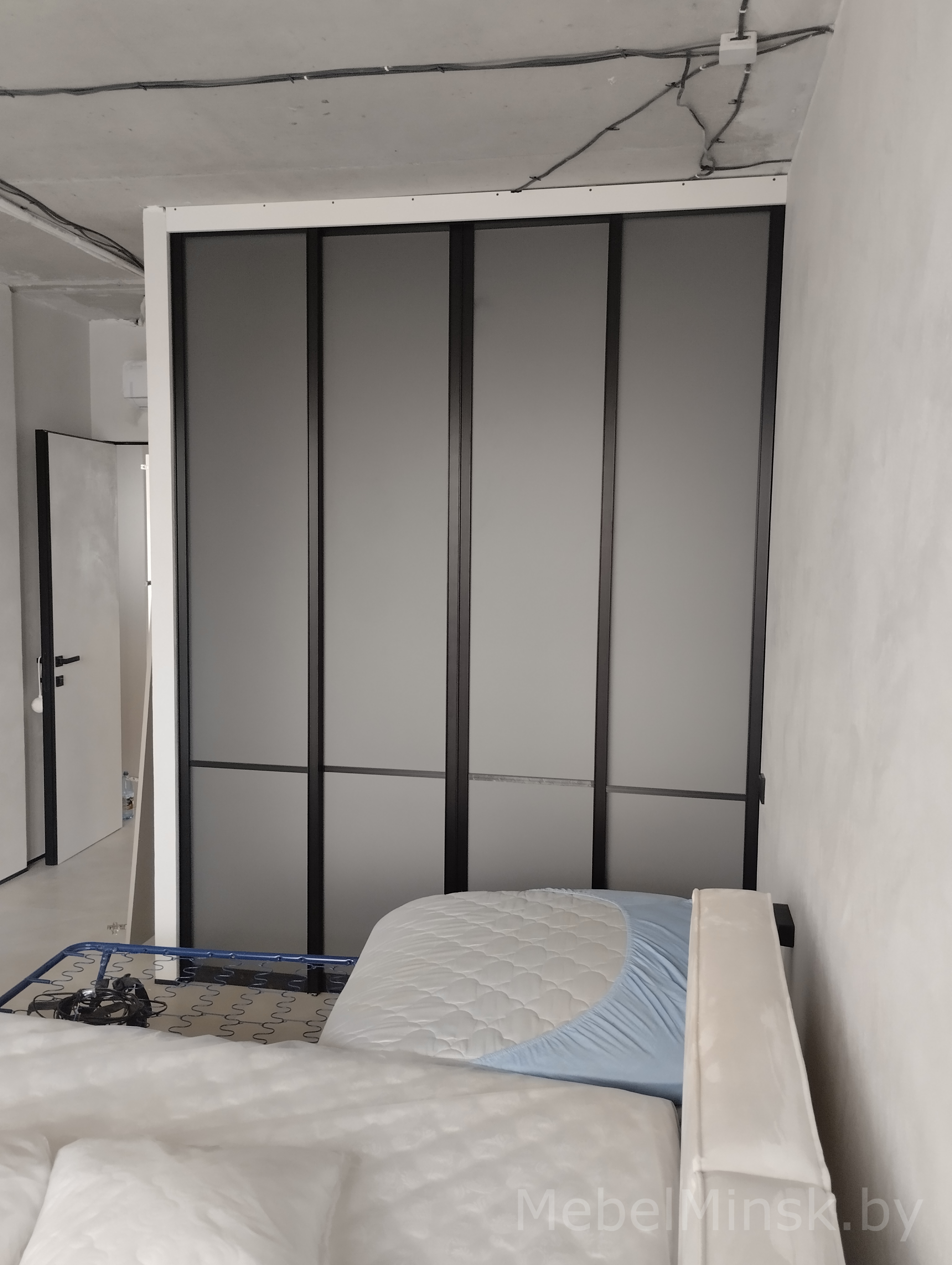 Раздвижная перегородка с золотым профилем и рифленым стеклом
