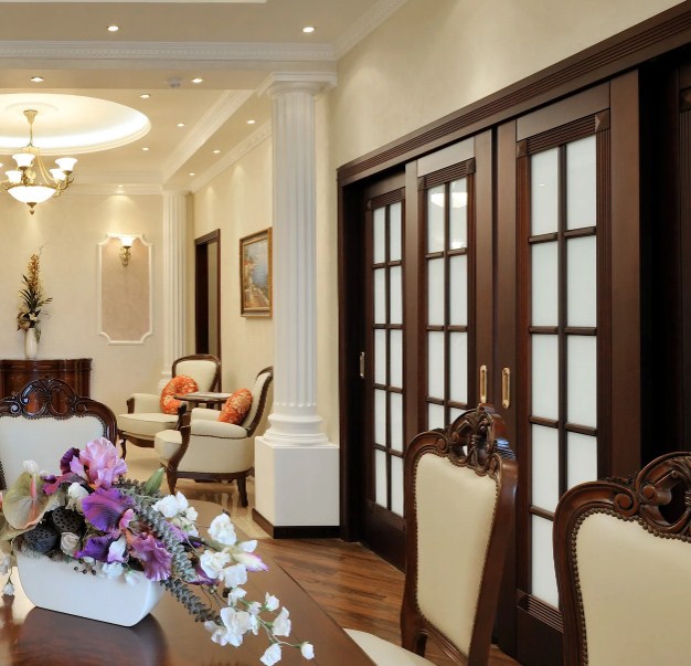 Может быть изготовлена в классическом стиле, с оригинальной резьбой, со вставками из стекла, зеркала, витража.