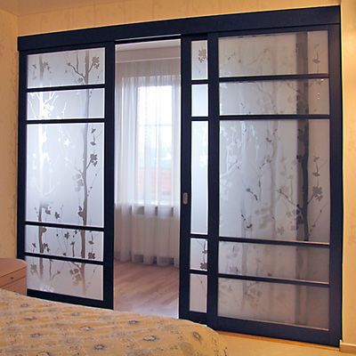 Стеклянная дверь-купе в черном профиле с доводчиком