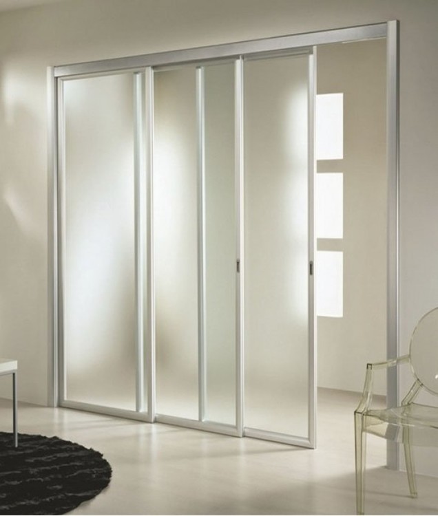 Профиль белого цвета, комбинация из прозрачного и матового стекла.