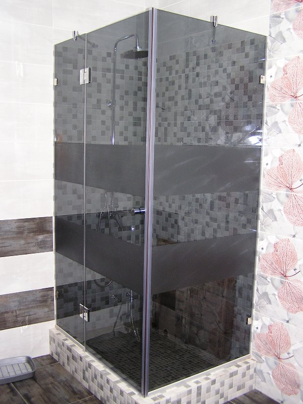 Каскадная перегородка с матовым стеклом, установлена вместо межкомнатных дверей.