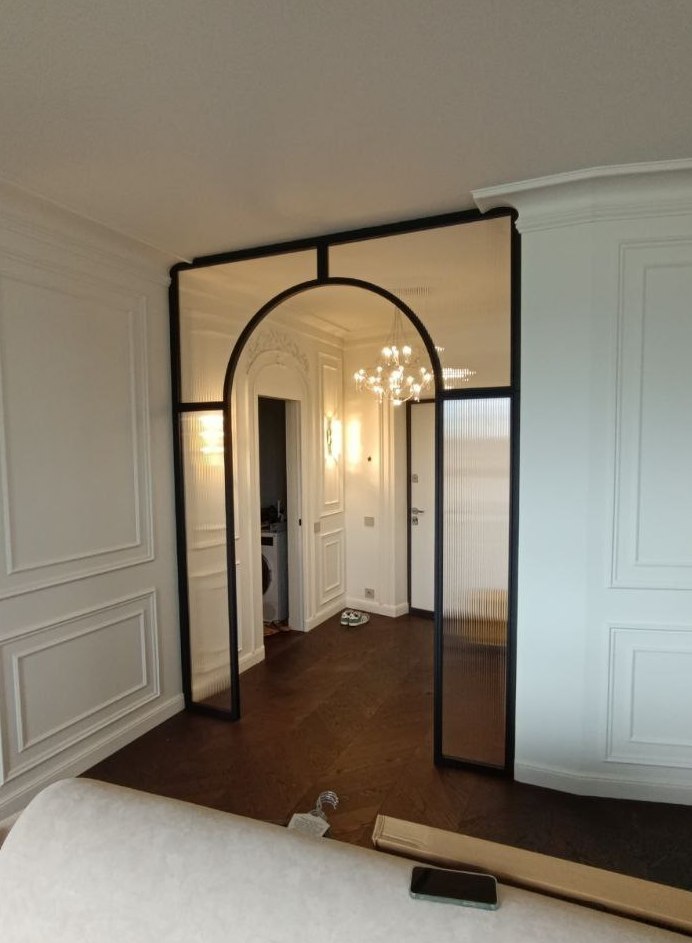 Межкомнатная арка с рифленым стеклом в металлическом профиле