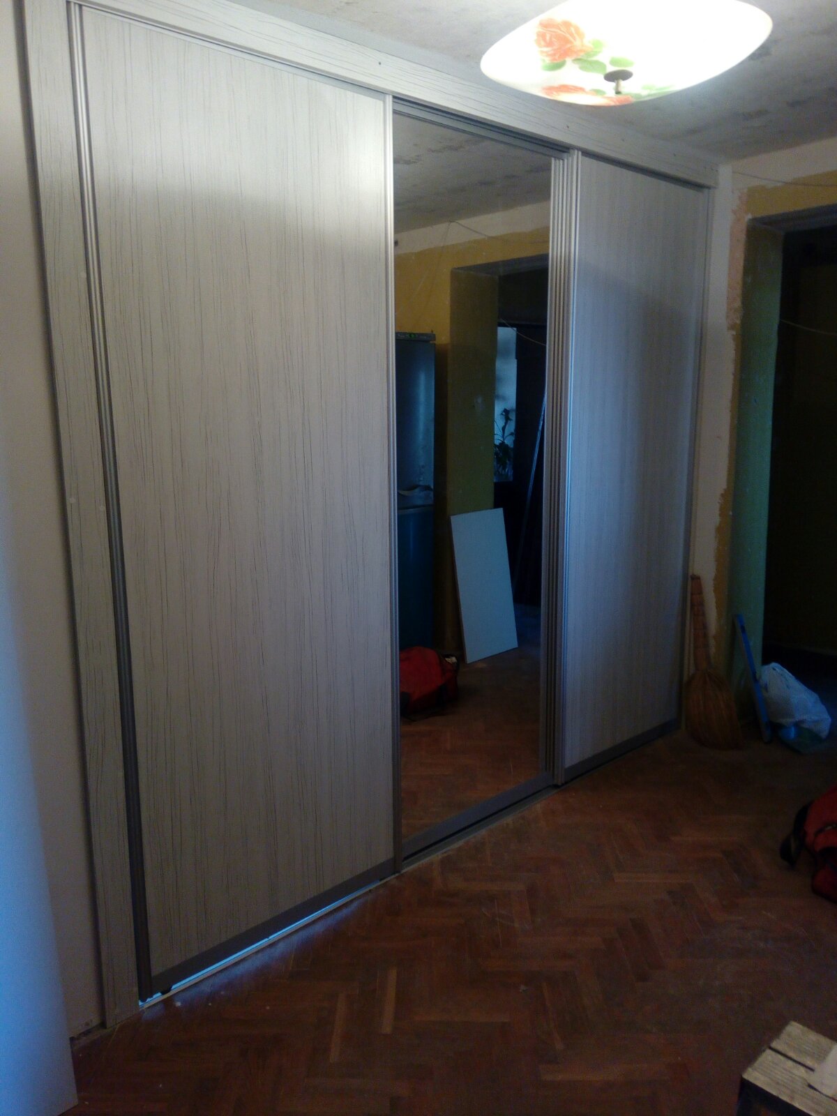 Раздвижная перегородка со стеклом без перемычек в гардеробную