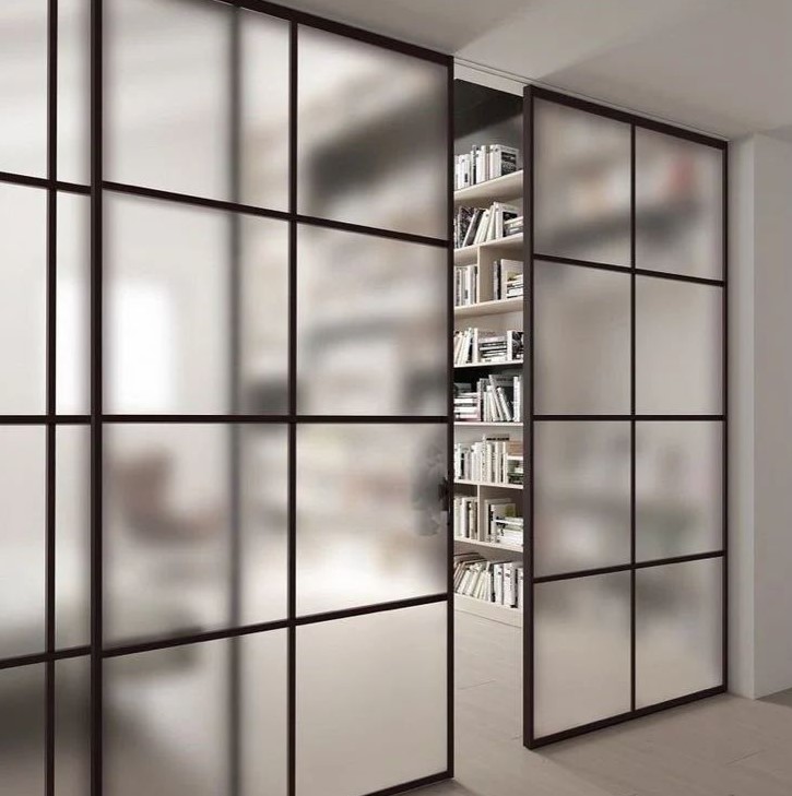 Межкомнатная перегородка с прозрачным стеклом и одной подвижной секцией