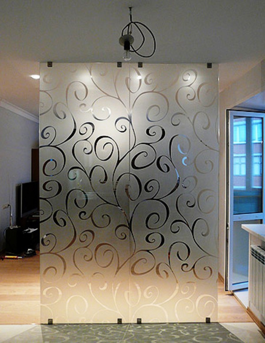 Межкомнатная перегородка из закаленного стекла с рисунком
