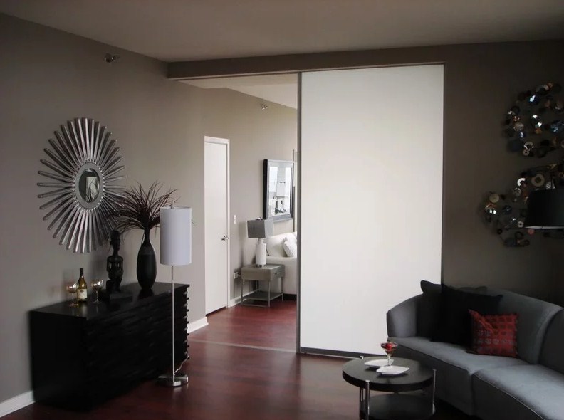 Раздвижная перегородка в квартиру на металлических направляющих.