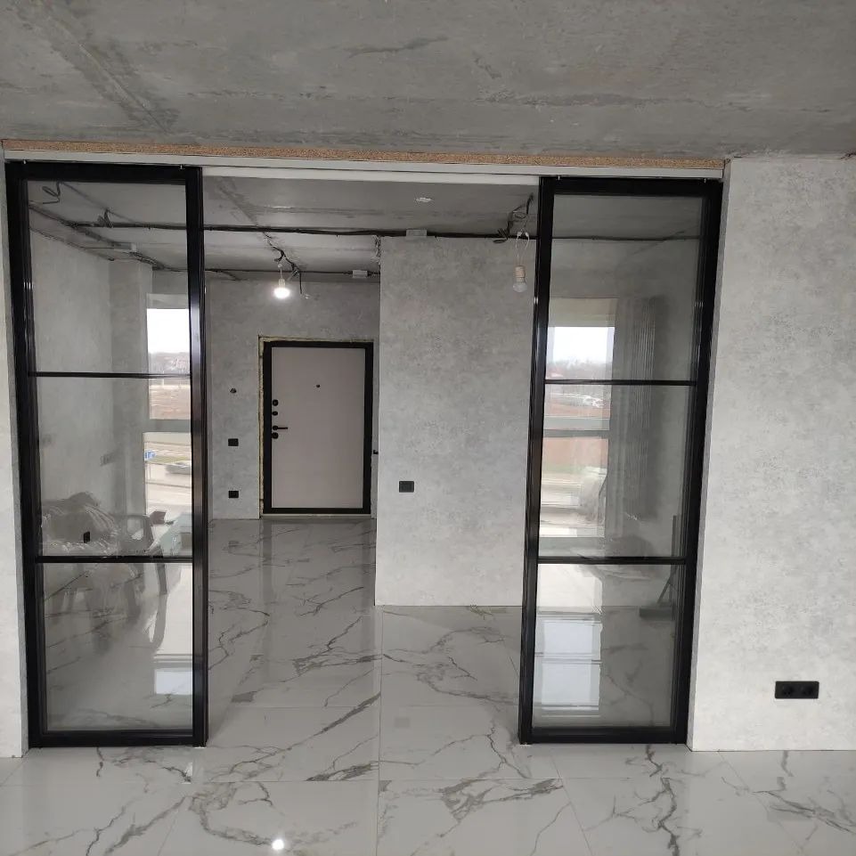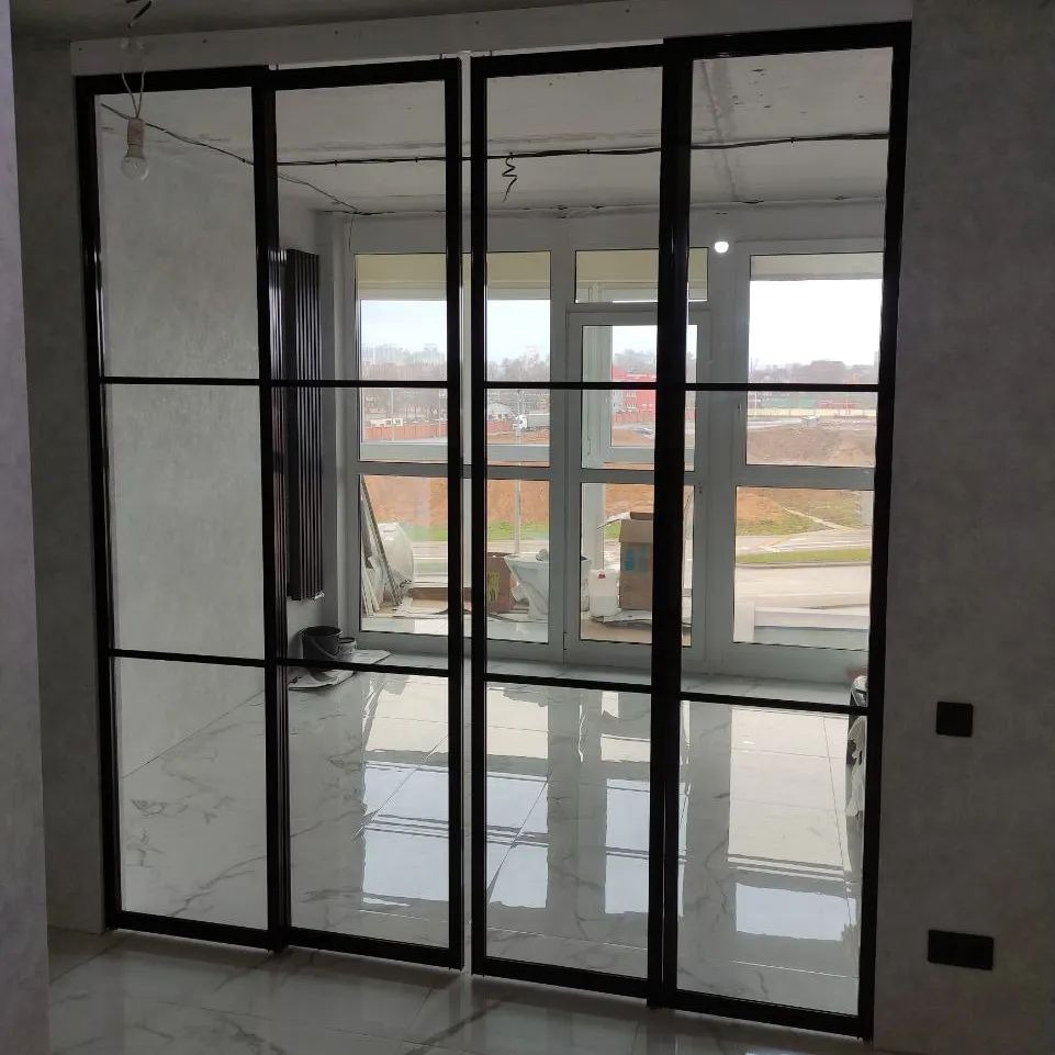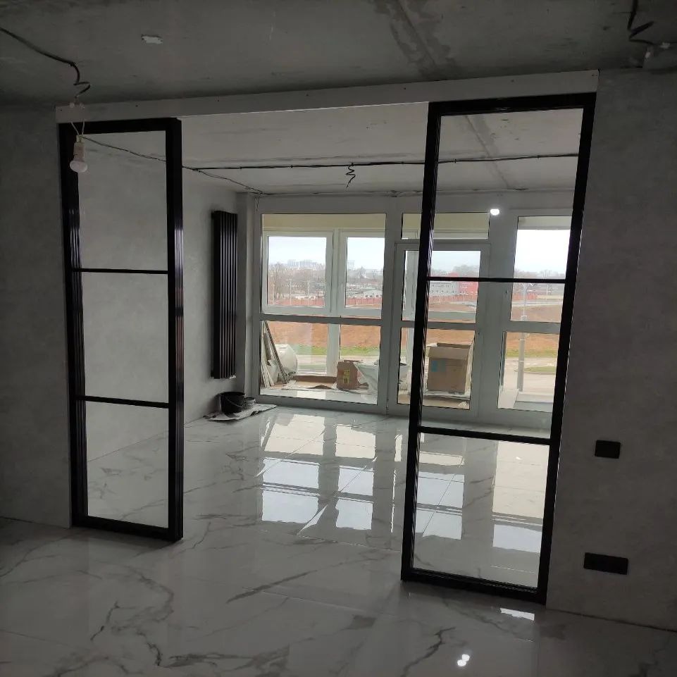 Высококачественное матовое стекло в сочетании с черным профилем.