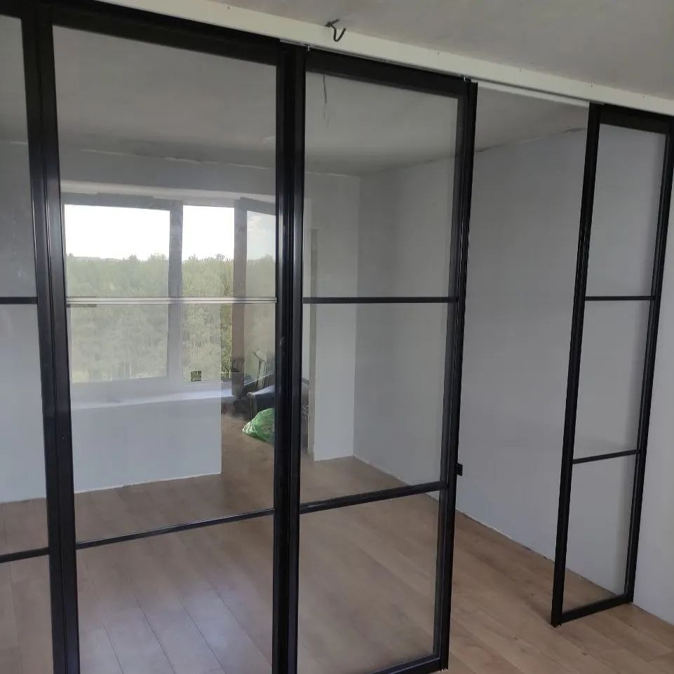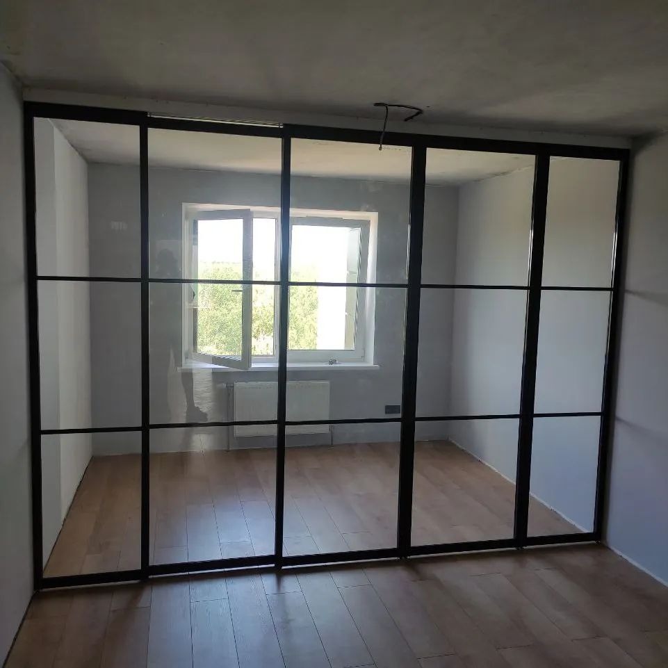 Межкомнатная перегородка с прозрачным стеклом и одной подвижной секцией