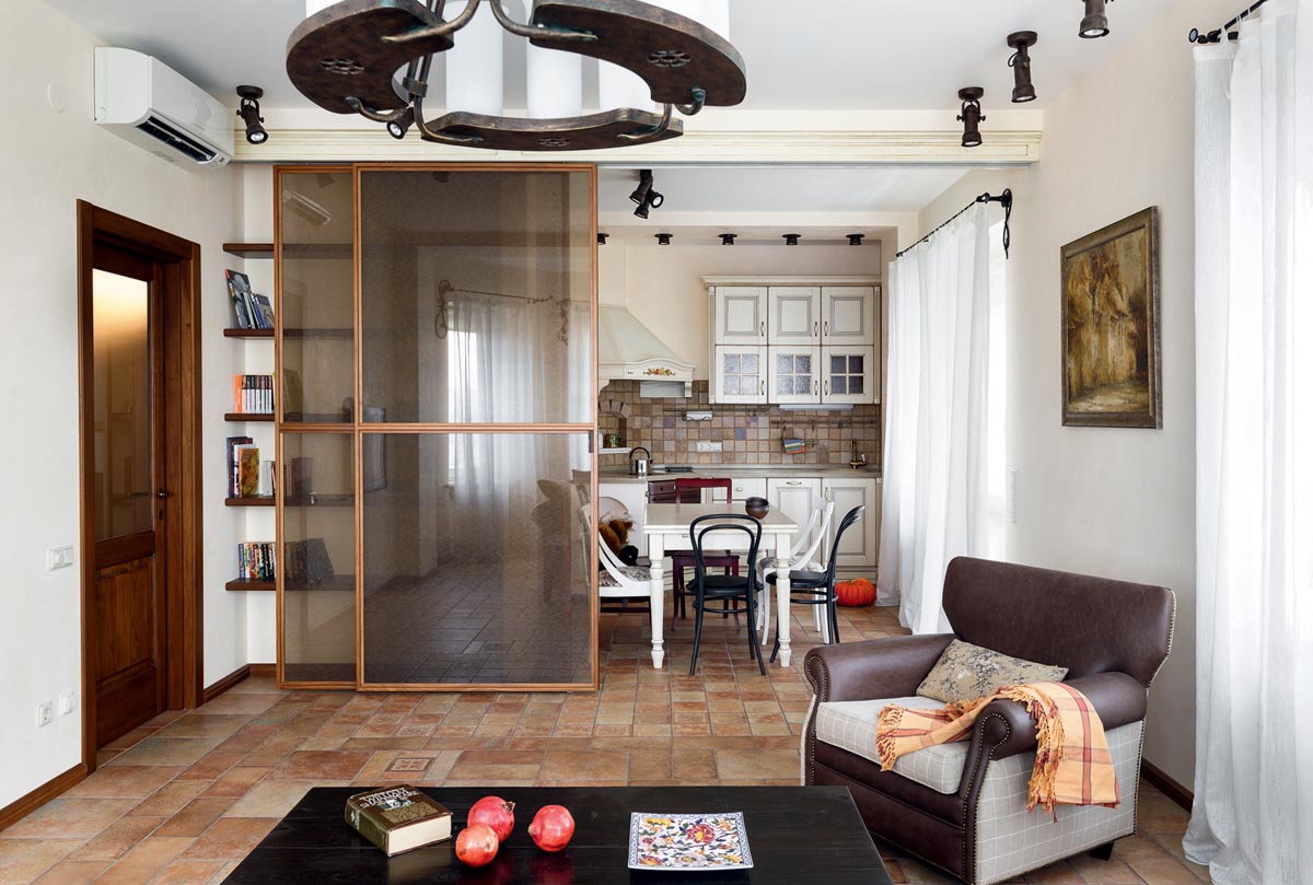 Стильный дизайн. Комбинация матового и прозрачного стекла.