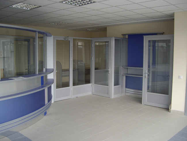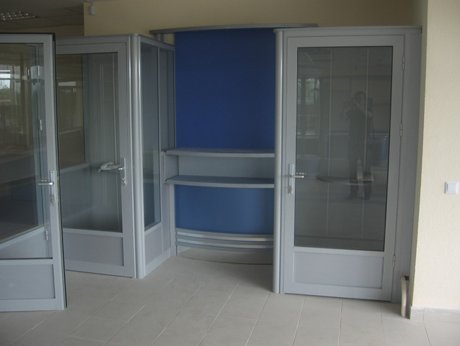 Перегородка состоит из трех дверей, две неподвижные одна подвижная.