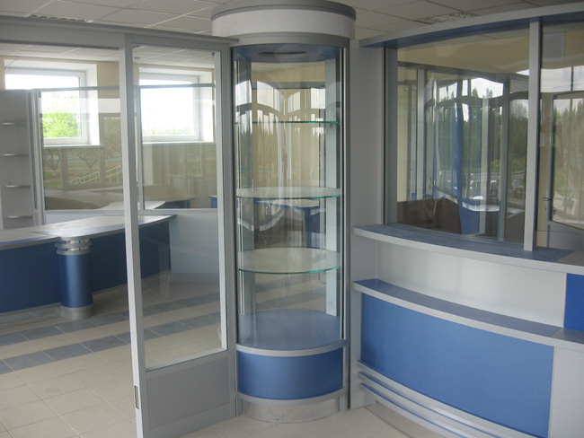 Сконструировать помещение можно по любому вашему желанию, создавая при этом ровные углу или закругленные элементы. Представленная современная конструкция изготовлена из прочного материала серого и сиреневого цветов, заполнение стеклом.