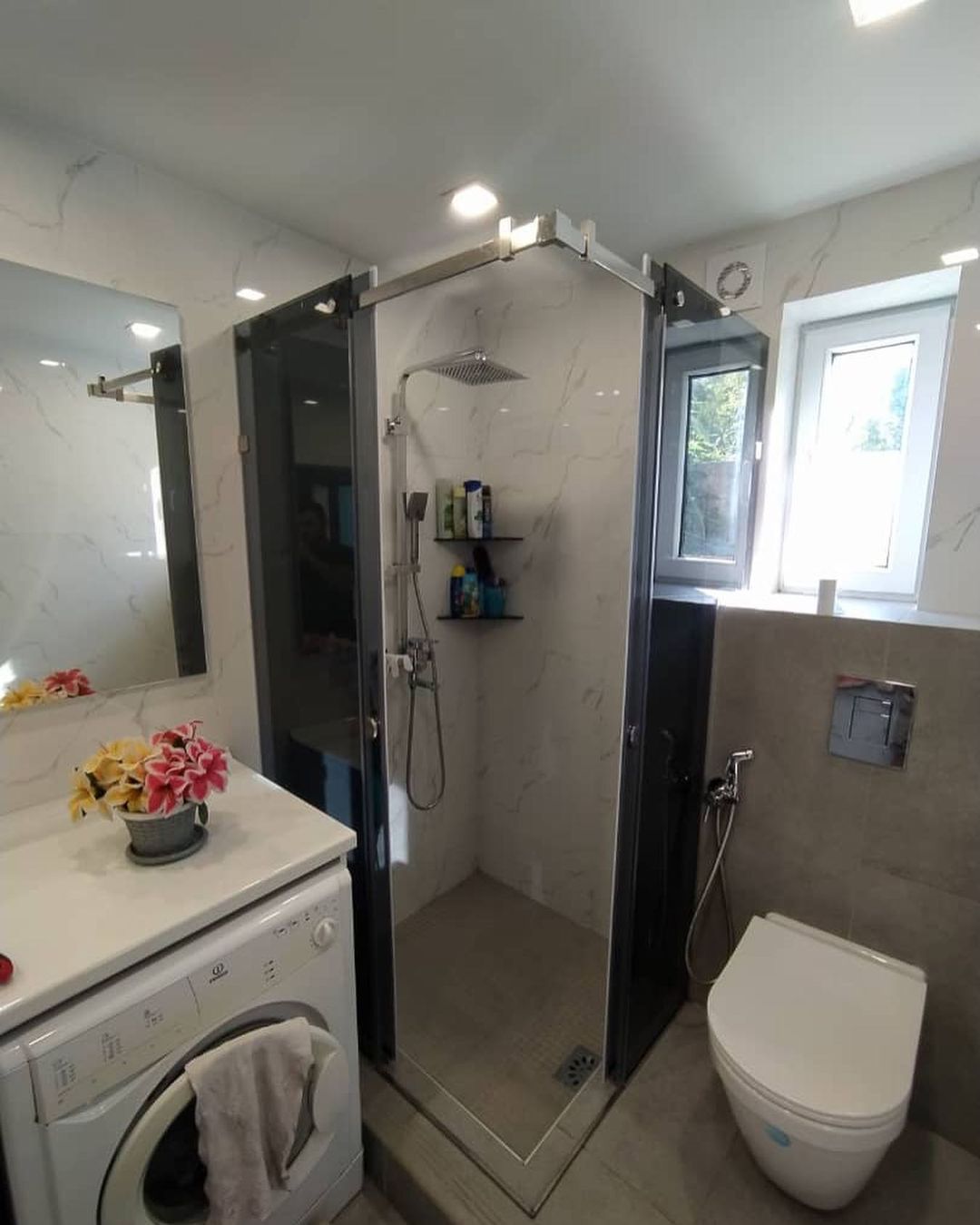 Прозрачное стекло, удобная хромированная ручка на двери.