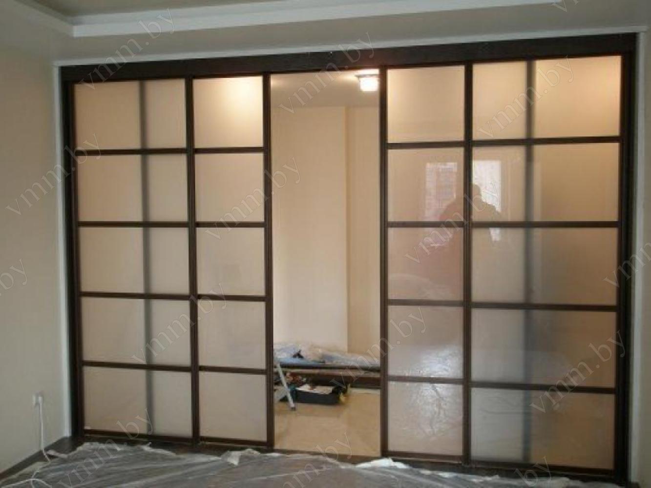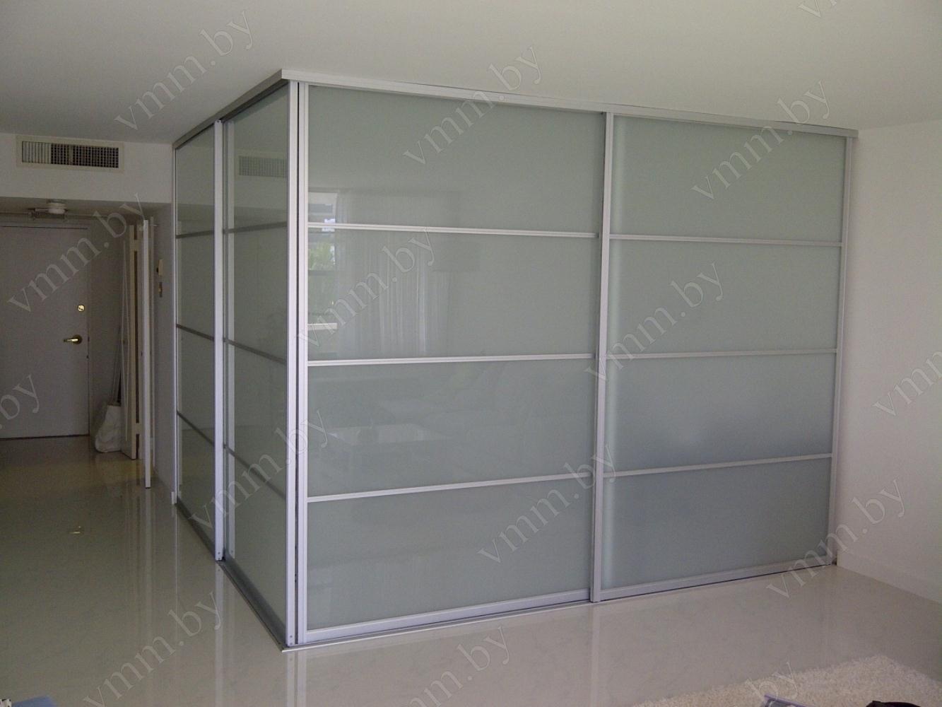 Раздвижная перегородка со стеклом без перемычек в гардеробную