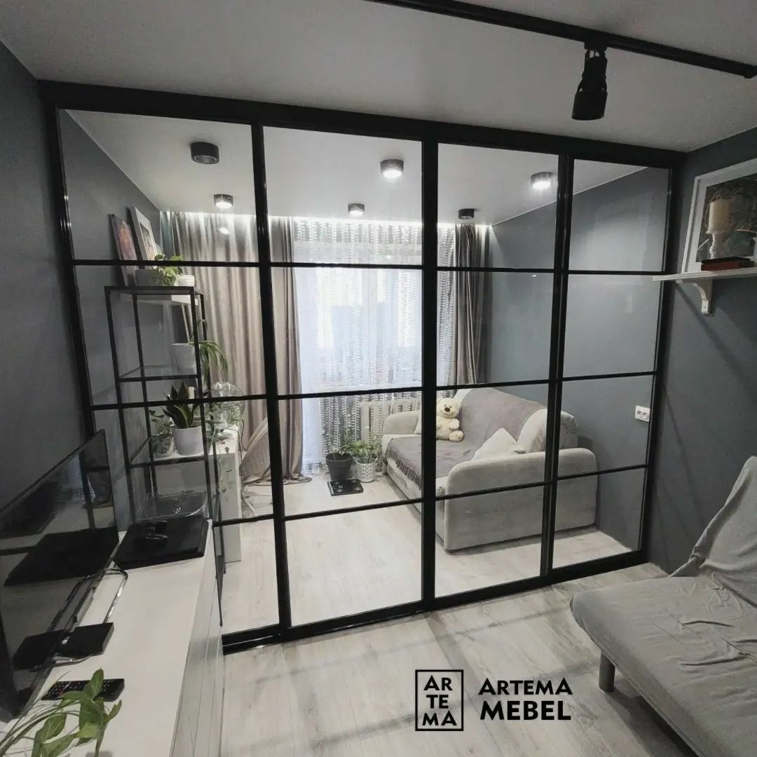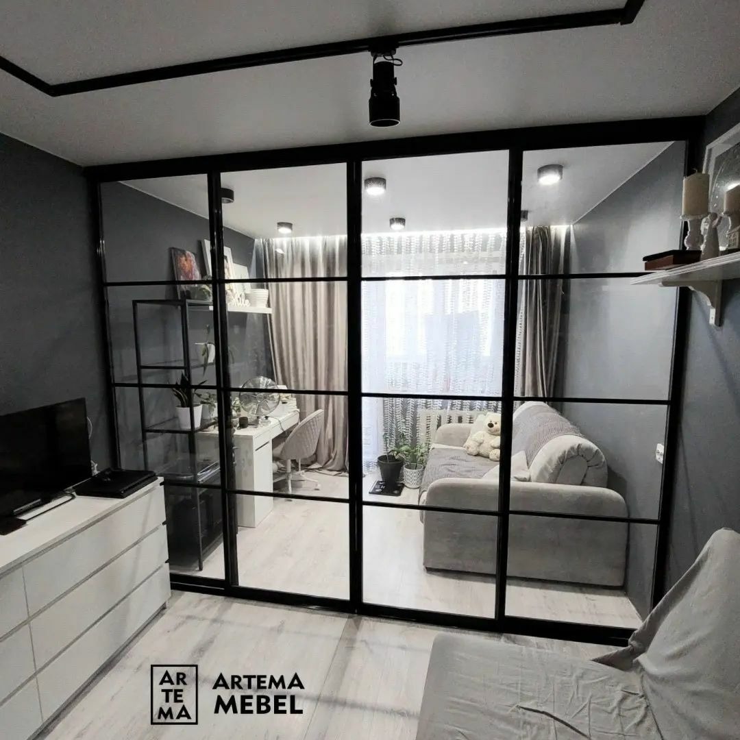 Подвесная межкомнатная перегородка состоящая из 3-х секций с 1-й подвижной