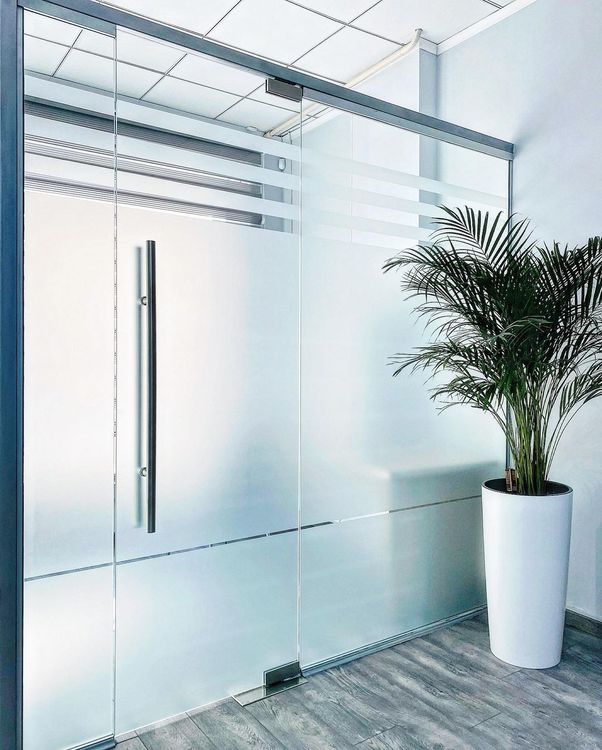 Эстетичная черная перегородка на кухню с белым матовым стеклом
