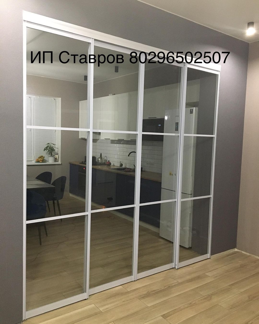 Раздвижной механизм. Матовое стекло, черный профиль.
