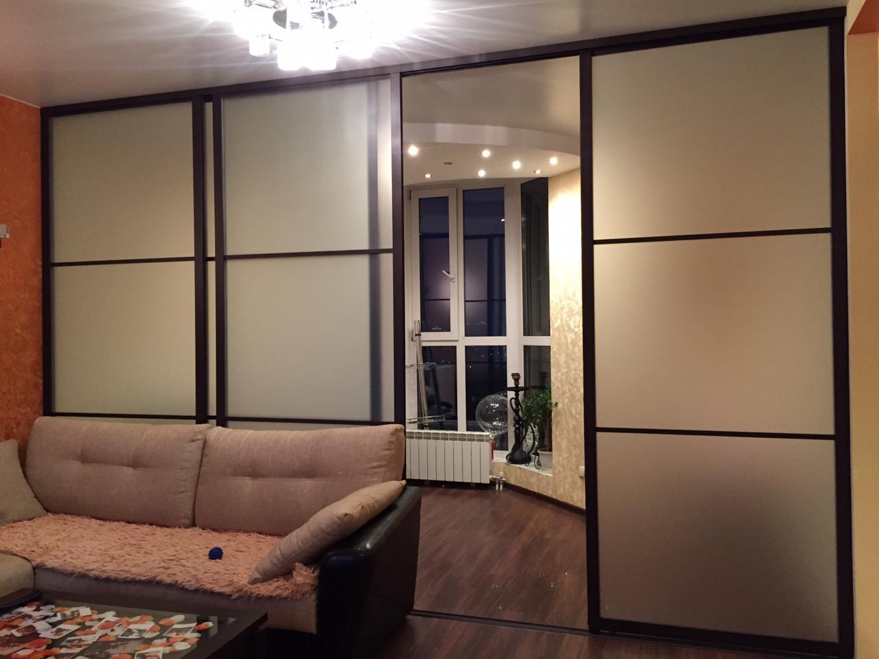 Механизм дверей: гармошка. Белый профиль, прозрачное стекло.